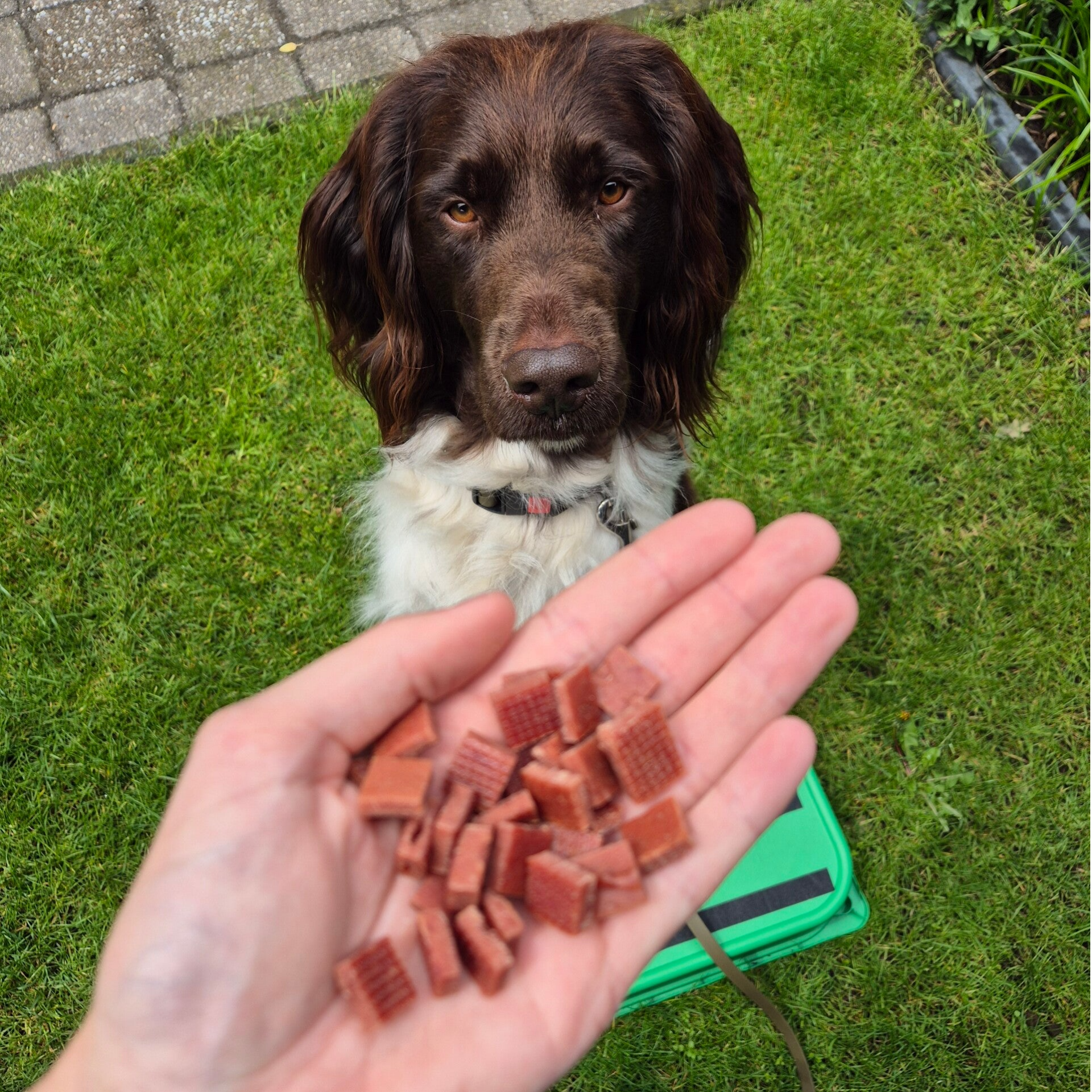Deze zachte filet trainers zijn super lekker. Ze zijn ook niet zo groot, dus hap, slik, weg en weer door met de volgende oefening! Niet vettig, kruimelen niet en ruiken heerlijk, de ideale trainer.